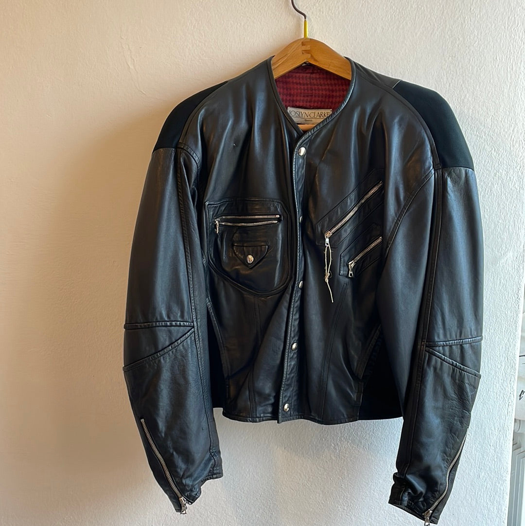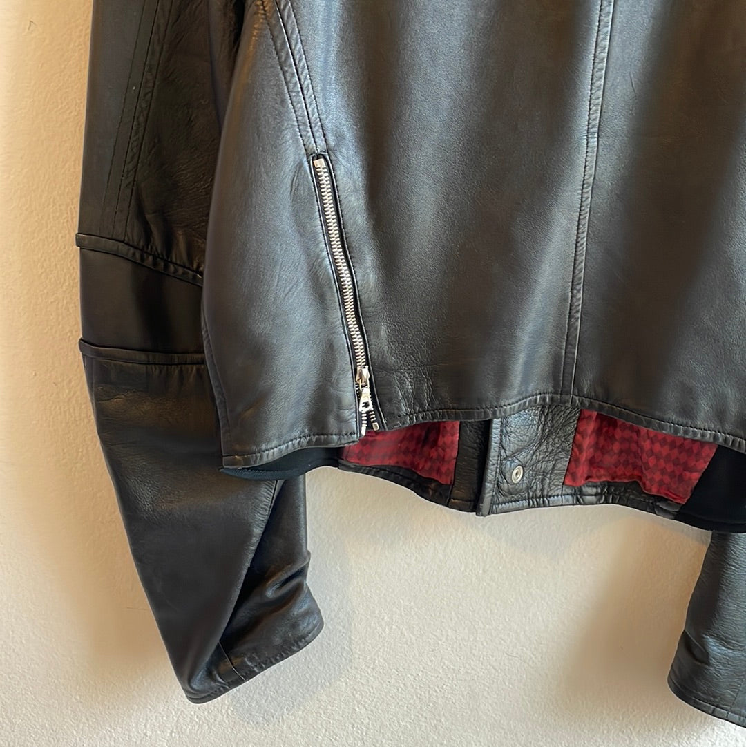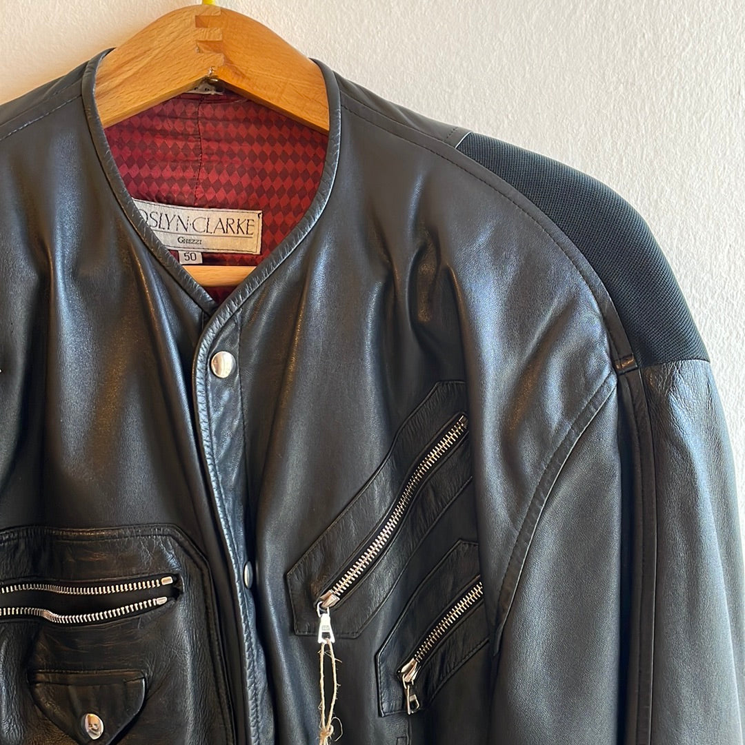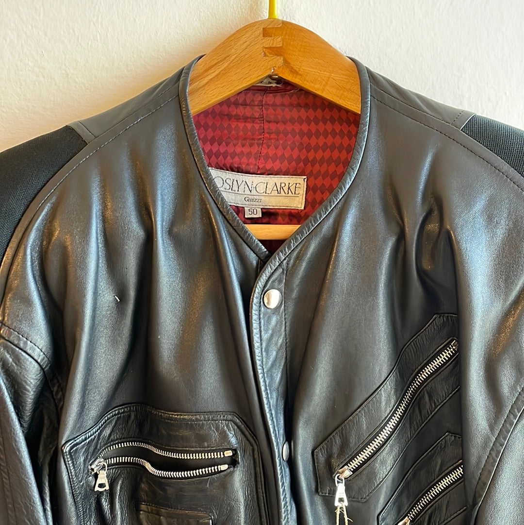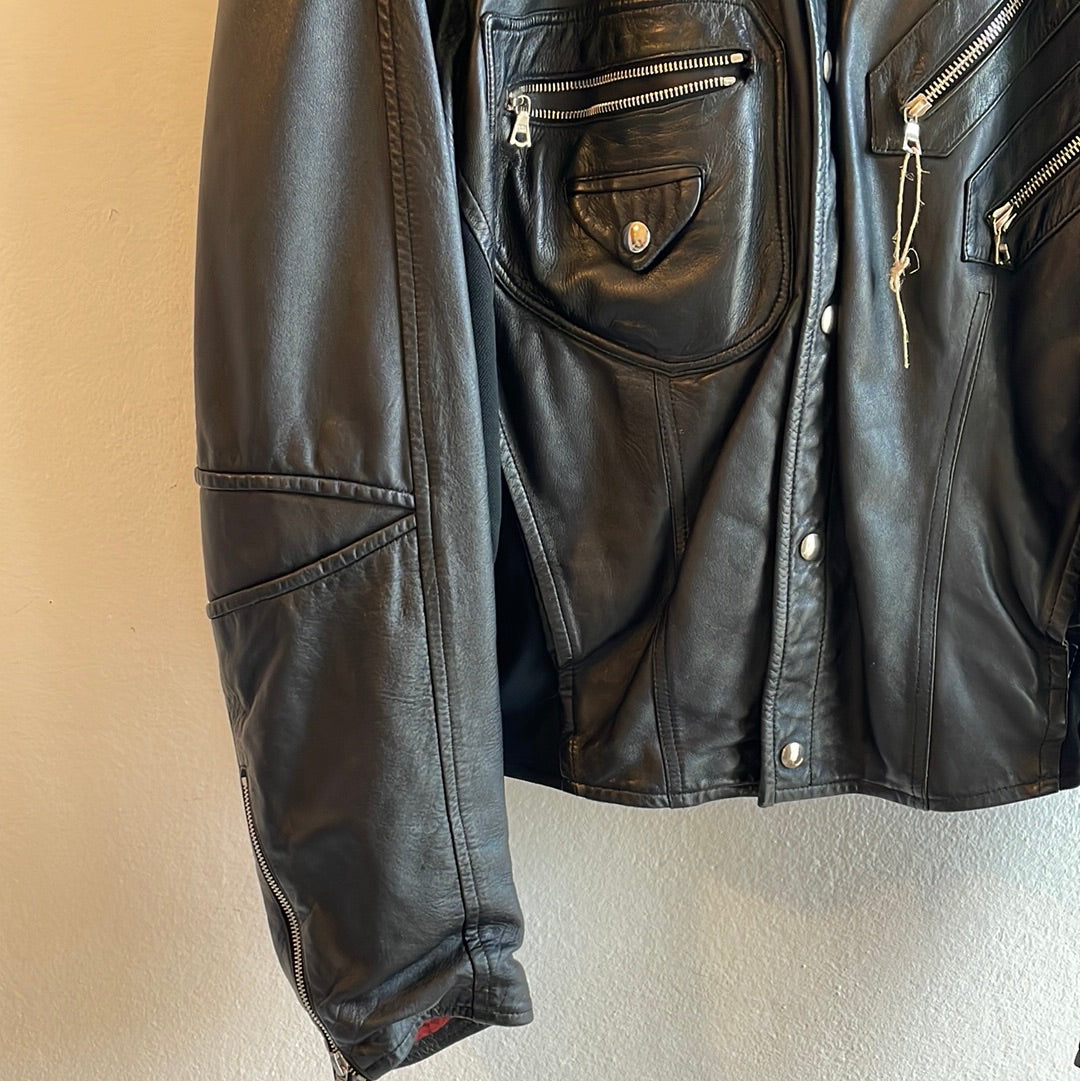 Giubbotto in pelle con tasche e bottoni automatici. Foderato. Taglia Riportata 50